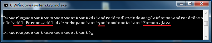 上面的示例所在位置为com/scott/ant下,根据包中的Person.aidl文件,在gen对应的目录中生成Person.java文件,示例中只是处理单一文件,下文中会讲述如何处理目录中的多个aidl文件。